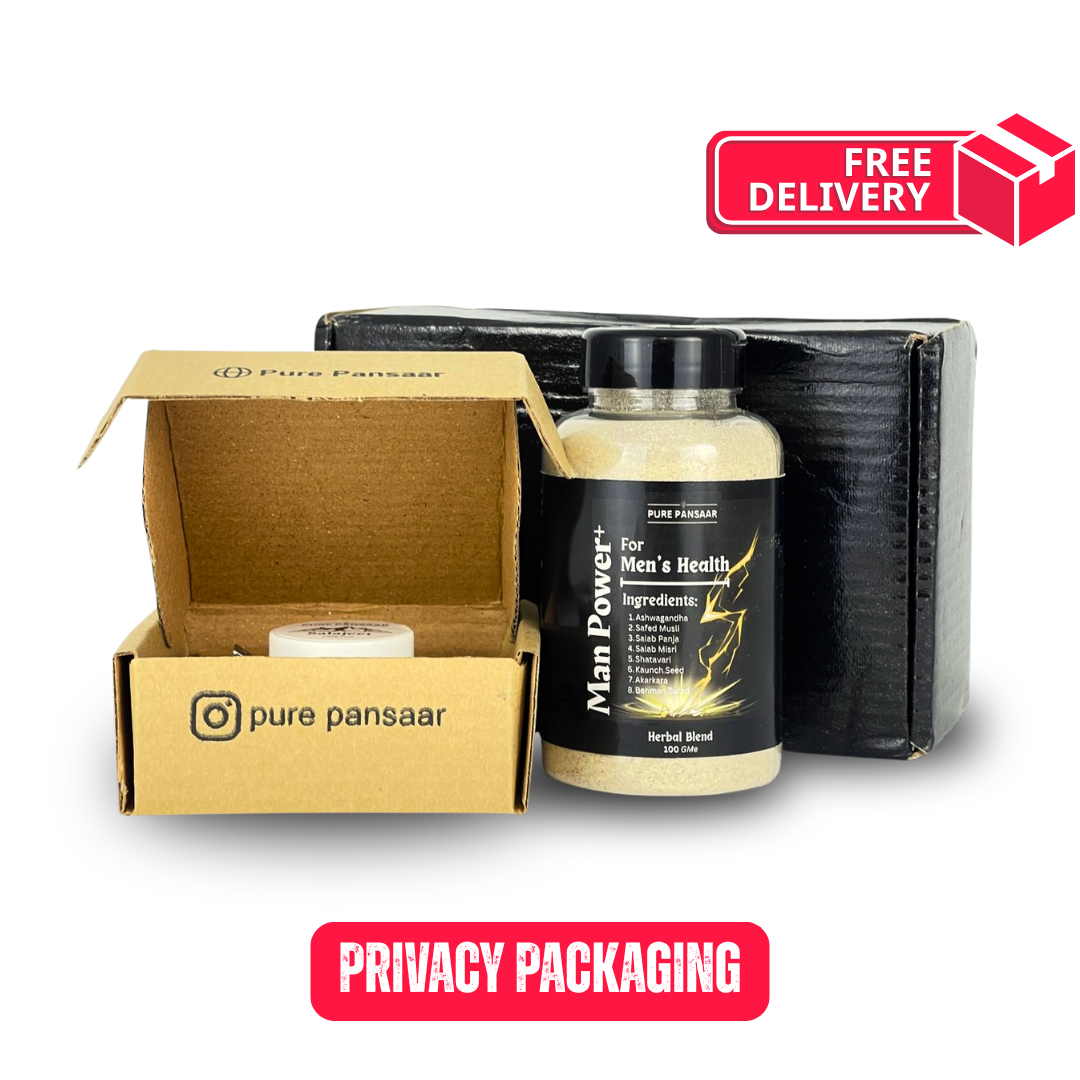 Man Power+ is a premium herbal blend made with powerful Ayurvedic herbs like Salab Panja, Ashwagandha, Safed Musli, and more. It is designed to naturally enhance strength, stamina, and overall well-being.